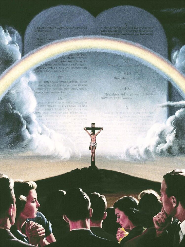 注:十条诫命的头四条,涉及人与上帝的关系,是耶稣所说:“你要尽心,尽性,尽意,爱主你的上帝。这是诫命中的第一,且是最大的”(太22:37-38)。而后六条,则涉及人与人的关系,就是耶稣所说:“其次也相仿,就是要爱人如己”(太22:39)。
