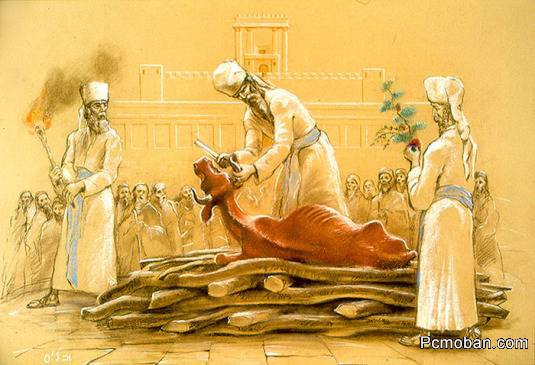 民19:1-7 耶和华晓谕摩西、亚伦说:“耶和华命定律法中的一条律例乃是这样说:你要吩咐以色列人,把一只没有残疾、未曾负轭、纯红的母牛,牵到你这里来,交给祭司以利亚撒,他必牵到营外,人就把牛宰在他面前。祭司以利亚撒要用指头蘸这牛的血,向会幕前面弹七次。人要在他眼前把这母牛焚烧,牛的皮、肉、血、粪都要焚烧。祭司要把香柏木、牛膝草、朱红色线都丢在烧牛的火中。祭司必不洁净到晚上,要洗衣服,用水洗身,然后可以进营。” 内容来自fuyinchina