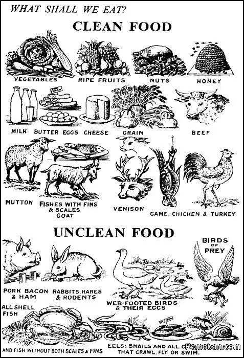 举个例子说,比如申14:6“凡分蹄成为两瓣又倒嚼的走兽,你们都可以吃。”这个“分蹄”,就是耶稣被钉十字架,他的手脚被钉子所分开。而“倒嚼”,是耶稣被钉十字架后,他被埋葬在地里,地开口,然后又把他吐出来,他就死而复活。动物中表现分蹄又倒嚼的走兽,证明是洁净的,是可以吃的。 现代好,好消息