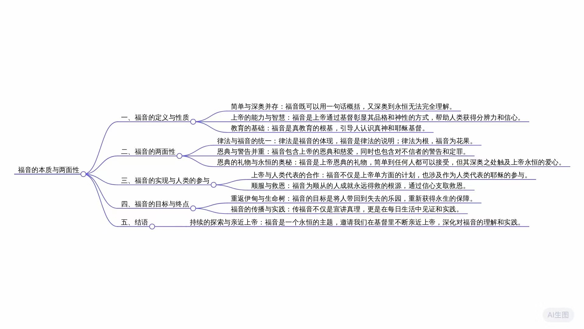 我们可以说,福音的树根是沉默的律法,也是枝头盛开的花朵与果实,香气和滋味同为人所尝。福音是上帝向堕落之人所伸出来的手,使无能者得能力,使污秽者得洁净。福音是十字架的故事,死亡不是终章,复活才是新创造的起点。福音使骄傲者谦卑,使冷漠者柔软,使心如顽石者得以融化。福音是能力,不仅向人显明救赎,也警戒不信与悖逆的结局。福音是世界最后的希望,是光在黑暗中燃起,直到新天新地完全的明亮。福音是活出来的真理不仅能被宣讲,更应该在每日的行为和气息中成为见证。这几条是根据怀师母的一些论述,我们用一些句子把它展开。我们还可以再说几段,比方说福音是天国的语言,在悔改者心里成形,使口舌唱出恩典,手足行出怜悯。福音是安息,卸下重担,不是因为世界轻省,而是因基督替我们承担。福音是种子埋在心里,经过破碎与黑暗,终结出饱满的生命果实。