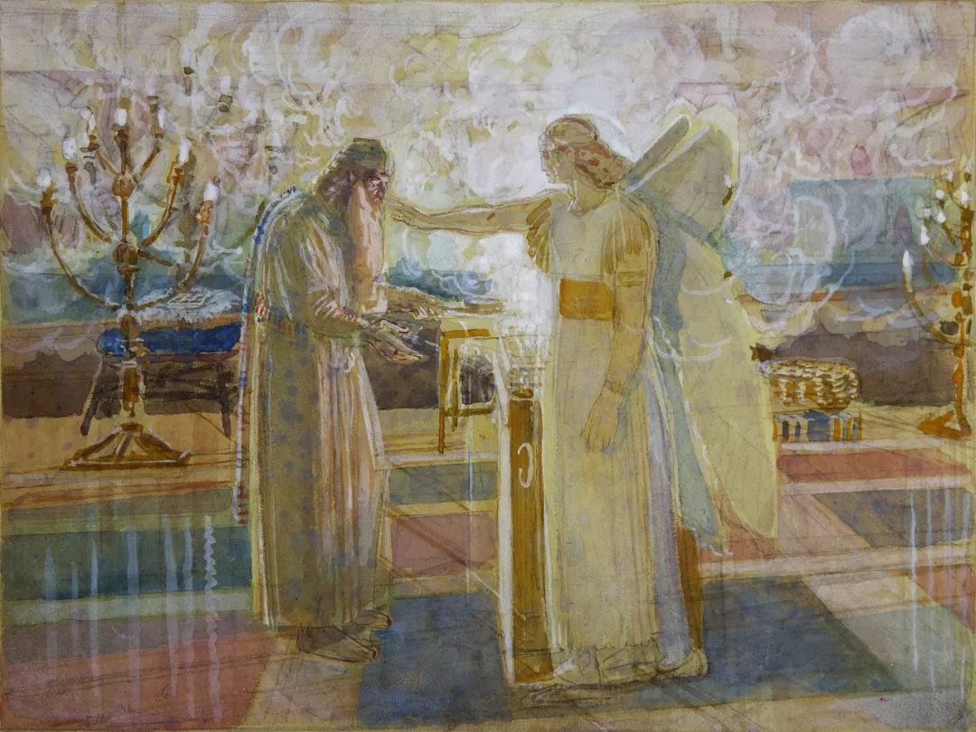 “有主的使者站在香坛的右边向他显现。撒迦利亚看见,就惊慌害怕。天使对他说:'撒迦利亚,不要害怕,因为你的祈祷已经被听见了。你的妻子伊利莎白要给你生一个儿子,你要给他起名叫约翰。” 现代人的新知识
