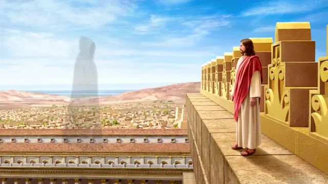 第二个试探:太4:5-6“魔鬼就带他进了圣城,叫他站在殿顶上,对他说:‘你若是上帝的儿子,可以跳下去,因为经上记着说:主要为你吩咐他的使者用手托着你,免得你的脚碰在石头上。’”