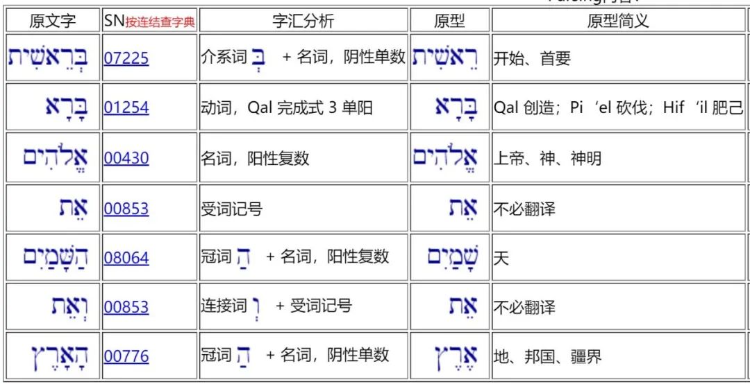圣书第一句话,创1:1“起初上帝创造天地。”这句话在希伯来的语言里就是七个字,这七个字在整本圣书里起到一个引导的作用。希伯来文中的这七个字意义深厚,我们就从七个字开始分解。