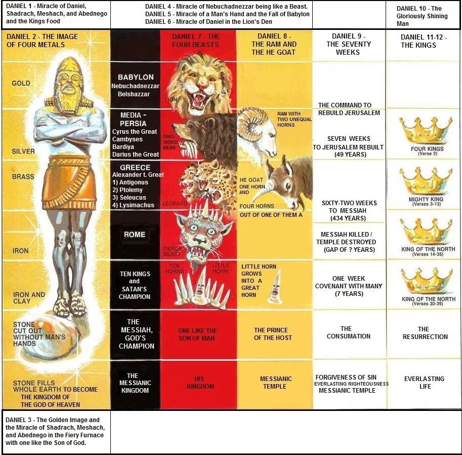 在前几讲我们对《但以理书》和《启示录》有了一些概括性的探讨和总结。现在我以复习的方式把《但以理书》前六章和《启示录》之间的联系再给大家说一下。