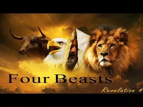 上帝的权柄,那当然是宇宙中间最高的权威,所以在此也用了这四种形象来表示。第一个活物像狮子。狮子也叫百兽之王,它是森林之王,用以衬托坐宝座的驾驭它。第二个是牛犊。牛犊是什么?我们主要的家畜,拿来做事的。牛是家畜之王,最强壮的。第三个是脸面像人。人是整个地球上上帝创造的杰作,是祂在地上创造的高峰。而第四个像飞鹰。鹰飞在空中,它是空中之王,空中王后。所以,用这四个创造物之最,来体现坐宝座的权威,这个形象,这种象征所带给人的震撼。普通的人,他的宝座前都摆动物;而这一位坐宝座的前面,居然也有人在祂的宝座前,那就说明坐宝座的这个王,祂不仅仅只管辖着动物,祂也管辖着地上的人。