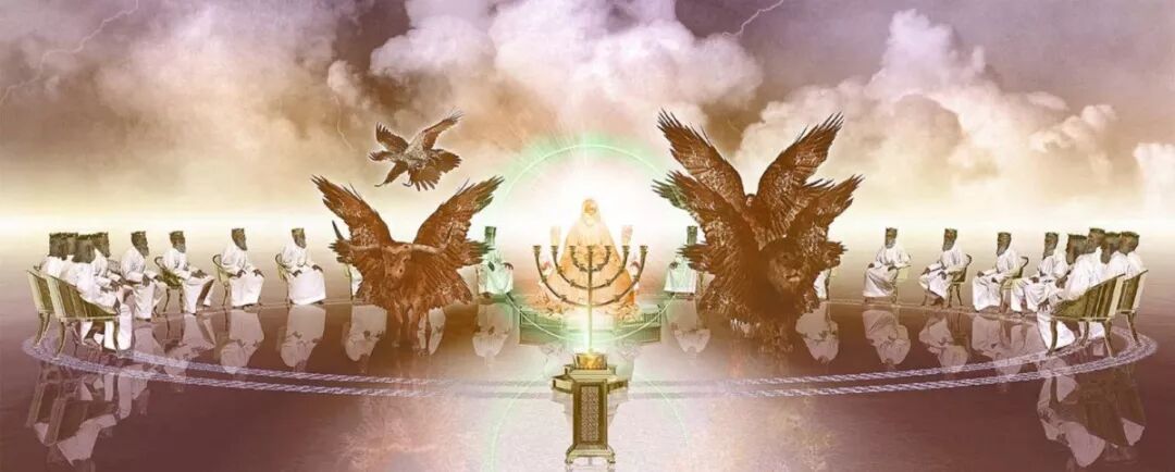 我们在第二十六讲提到了二十四位长老他们坐着的姿势,就如同在旧约时期摩西行审判的时候,他坐着的姿势一样。也就是说,他们参与了和坐宝座一起的审判工作。而四活物代表着遮蔽约柜、遮蔽宝座的四位天使。他们的工作一结束,就意味着恩典时期的结束。而宝座前的七灵,即宝座前的七位天使,则另有使命在身。这些我们就留待下一次继续来探讨。