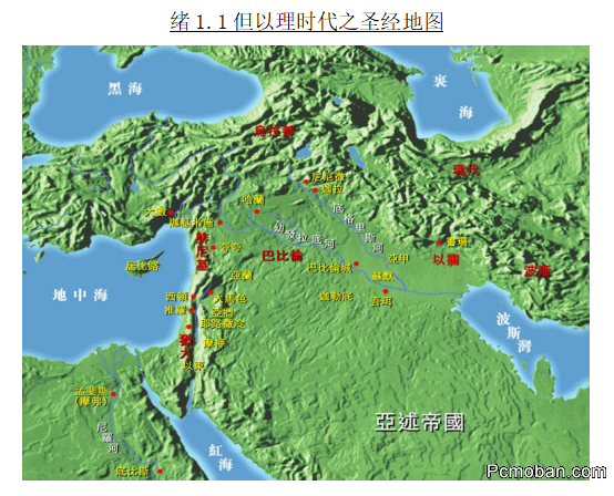 我们来看一看中东地区在但以理的时代,在《但以理书》中所发生的地理位置以及它的文化背景。参看圣书“古代世界”地图: